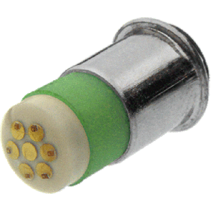 Miniature LED Lamp,Midget Flange T1-3/4 (SX6s),Lo-Dome Clear,0.63"Lx0.23"D,Green,28Vdc 327, 376, 387