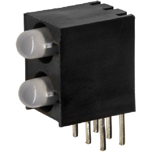 PC Board LED,3mm Dome Milky,Right Angle 2x1 Bi-Level 3-Leaded,0.40"Hx0.275"Wx0.45"L,Red-Green BiColor