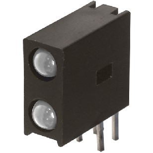 PC Board LED,3mm Lo-Dome Milky,Right Angle 2x1 Bi-Level,0.170"Wx0.380"H,Yel-Green BiColor,0.15" LED Projection