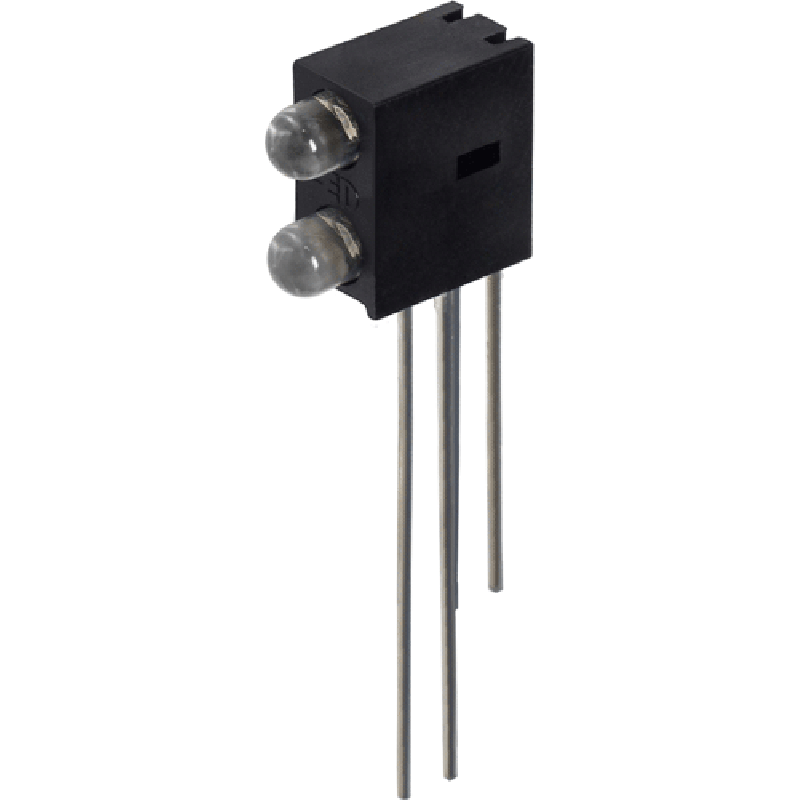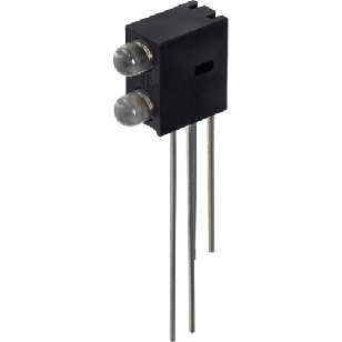 PC Board LED,3mm Dome Clear,Right Angle 2x1 Bi-Level,0.185"Wx0.380'H,R/R