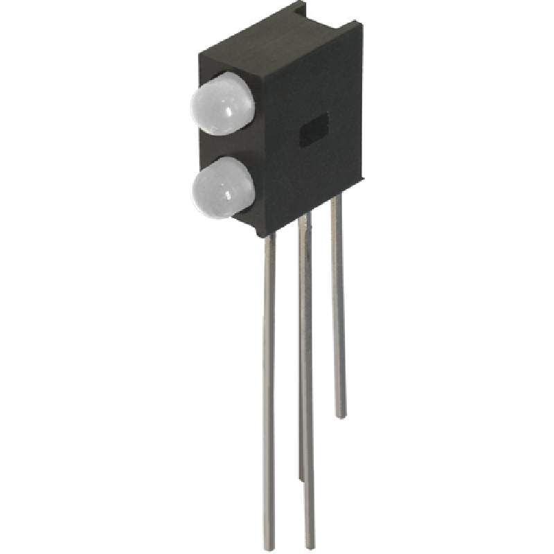PC Board LED,3mm Dome Milky,Right Angle 2x1 Bi-Level,0.185"Wx0.380'H,RED-Green BiColor