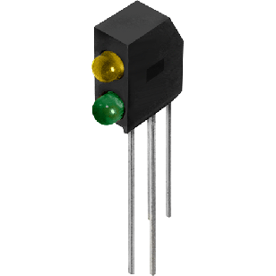 PC Board LED,3mm Dome Diffused,Right Angle 2x1 Bi-Level,0.17"Wx0.43"H,Y/G