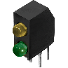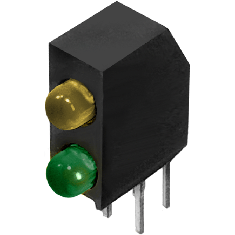 PC Board LED,3mm Dome Diffused,Right Angle 2x1 Bi-Level,0.17"Wx0.43"H,Y/G