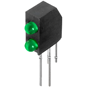 PC Board LED,3mm Dome Diffused,Right Angle 2x1 Bi-Level,0.17"Wx0.43"H,G/G
