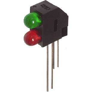 PC Board LED,5mm Dome Diffused,Right Angle 2x1 Bi-Level,0.248"Wx0.50"H,G/R