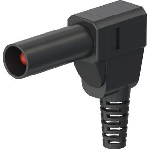 Right-angled, Ø 4 mm, with spring-loaded MULTILAM, for self-assembly of test leads. With rigid insulating sleeve. Gold-plated version available.Solder connection.