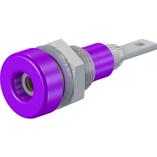 Insulated, Ø 2 mm with spring-loaded MULTILAM. Machined brass. Metal thread jacket on the insulation. The socket can be screw-mounted in predrilled panels.Flat connecting tab 2.8 mm x 0.8 mm.