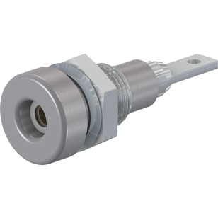 Insulated, Ø 2 mm with spring-loaded MULTILAM. Machined brass. Metal thread jacket on the insulation. The socket can be screw-mounted in predrilled panels.Flat connecting tab 2.8 mm x 0.8 mm.