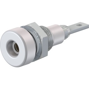 Insulated, Ø 2 mm with spring-loaded MULTILAM. Machined brass. Metal thread jacket on the insulation. The socket can be screw-mounted in predrilled panels.Flat connecting tab 2.8 mm x 0.8 mm.