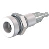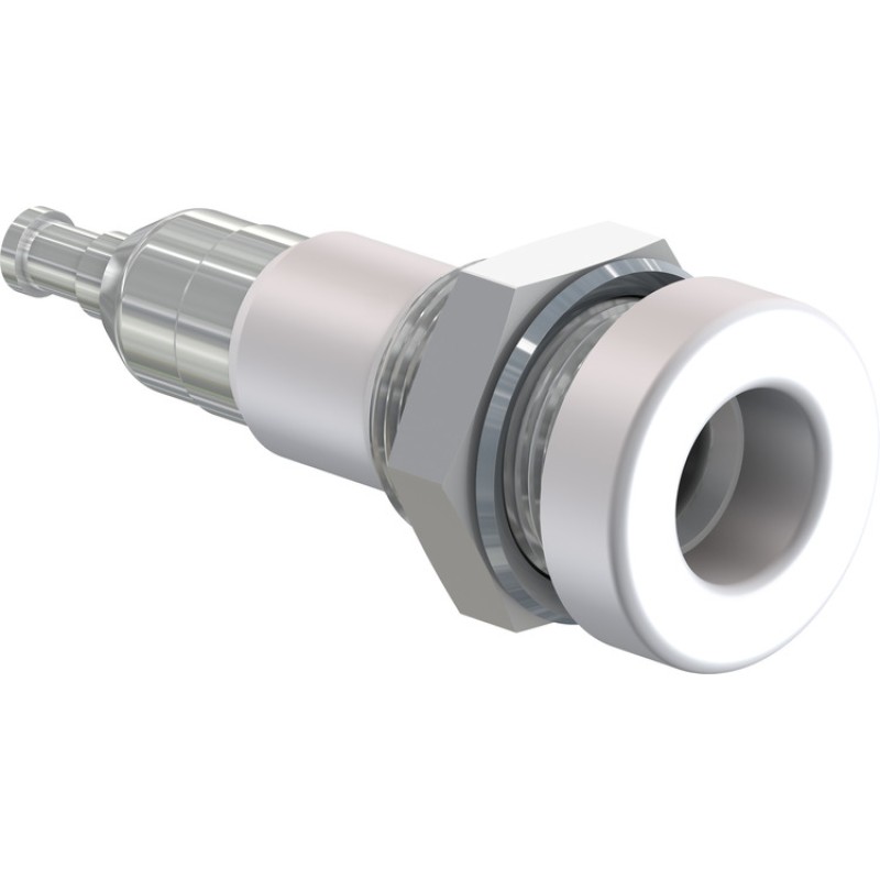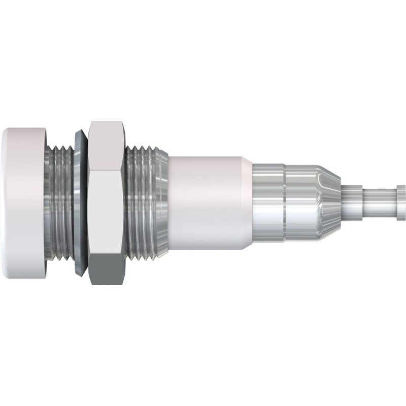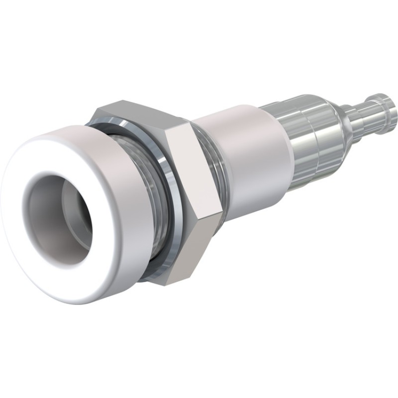 Insulated, Ø 4 mm, rigid. Machined brass. Metal thread jacket on the insulation. The socket can be screw-mounted in predrilled panels. Available with hexagonal nut.Solder connection.