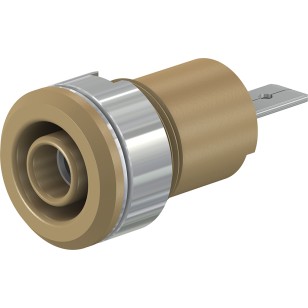 Insulated Ø 4 mm rigid sockets accepting spring-loaded Ø 4 mm plugs with rigid insulating sleeve. Brass sheet, nickel-plated. The socket is screwed into predrilled panels of plastic, metal etc.Flat connecting tab 4.8 mm × 0.8 mm, can be bent to 90°, once only.
