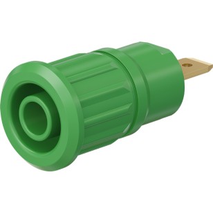 Insulated, rigid, Ø 4 mm, accepting spring-loaded Ø 4 mm¨plugs with rigid insulating sleeve. Machined brass. The socket is pressed into pre-drilled panels of plastic, metal, etc.Connection: Flat connecting tab 4,8 mm x 0,8 mm.