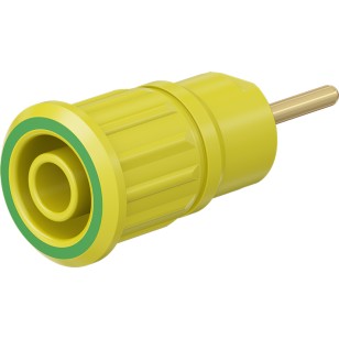 Insulated, rigid, Ø 4 mm, accepting spring-loaded Ø 4 mm plugs with rigid insulating sleeve. Machined brass. The socket is pressed into pre-drilled panels of plastic, metal, etc.Connection: Round connecting pin Ø 1.9 mm.