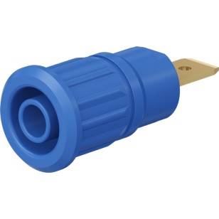 Insulated, rigid, Ø 4 mm, accepting spring-loaded Ø 4 mm plugs with rigid insulating sleeve. Machined brass. The socket is pressed into pre-drilled panels of plastic, metal, etc.Connection: Flat connecting tab 6,3 mm × 0,8 mm.