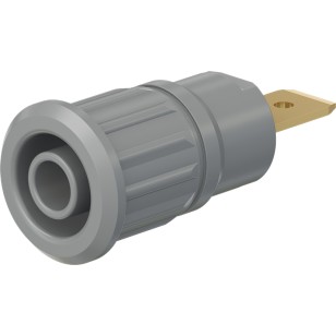 Insulated, rigid, Ø 4 mm, accepting spring-loaded Ø 4 mm plugs with rigid insulating sleeve. Machined brass. The socket is pressed into pre-drilled panels of plastic, metal, etc.Connection: Flat connecting tab 6,3 mm × 0,8 mm.