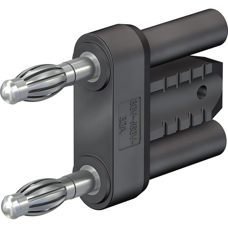 Insulated, Ø 4 mm, made of brass. Plugs with spring-loaded MULTILAM. With insulated grip and with two in-line Ø 4 mm rigid sockets accepting spring-loaded Ø 4 mm plugs with rigid insulating sleeve.