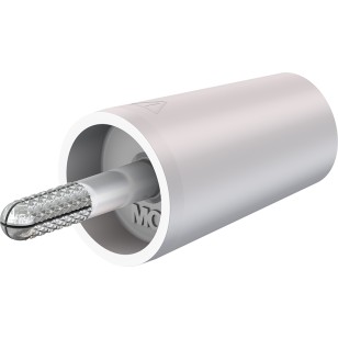 Adapter, made of brass can be screw-mounted into Ø 4 mm sockets. The expandable Ø 4 mm plug of this adapter can be locked into the socket by tightening the grub screw. Assembled, the adapter offers complete touch-proof protection. Ø 4 mm rigid socket in insulator accepting spring-loaded Ø 4 mm plugs with rigid insulating sleeve.