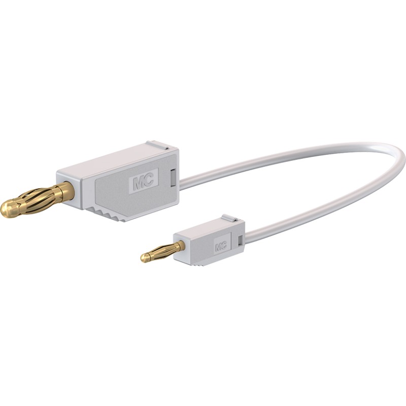 Highly flexible. One end with Ø 2 mm stackable MULTILAM plug, the other end with Ø 4 mm stackable MULTILAM plug.