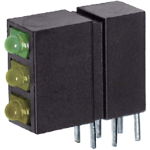 PC Board LED,1.8mm Dome Diffused,Right Angle,TriLevel 3x1,0.400"Hx0.216"W,G/Y/Y
