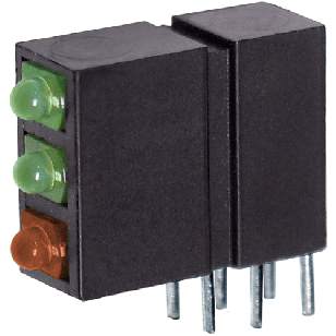 PC Board LED,1.8mm Dome Diffused,Right Angle,TriLevel 3x1,0.400"Hx0.216"W,G/G/R
