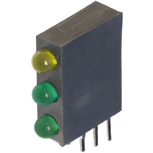 PC Board LED,3mm Dome Diffused,Right Angle,TriLevel 3x1,0.170"Wx0.600"H,Y/G/G