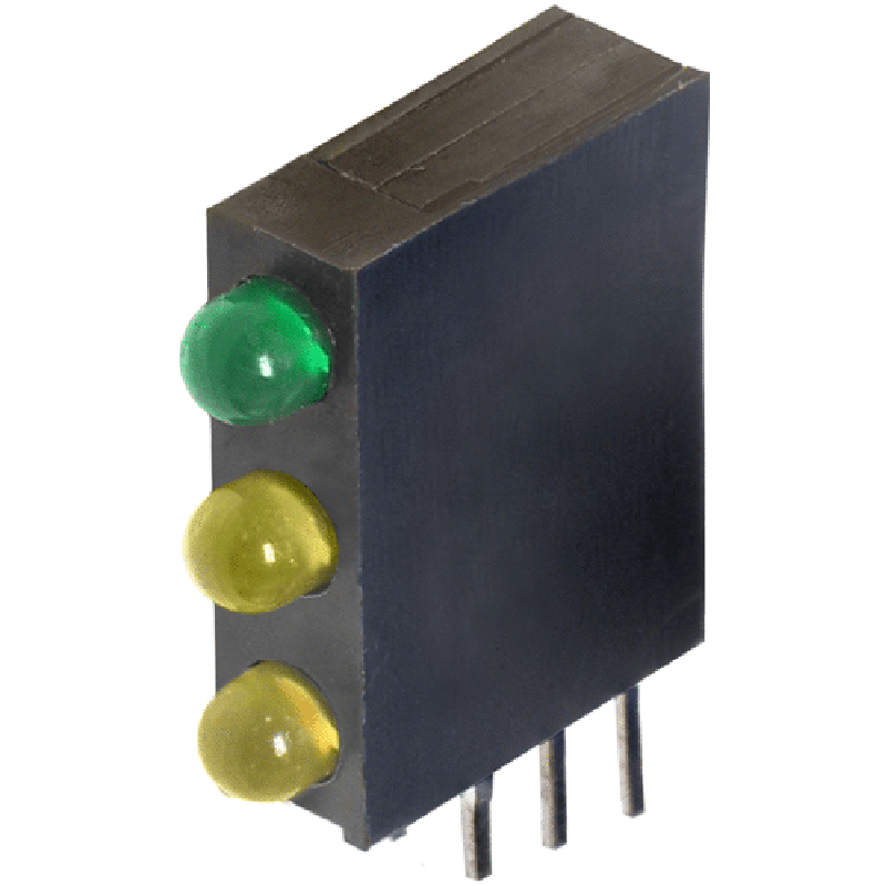 PC Board LED,3mm Dome Diffused,Right Angle,TriLevel 3x1,0.170"Wx0.600"H,G/Y/Y