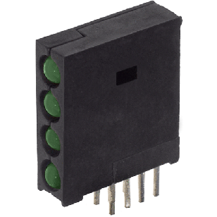 PC Board LED,3mm Lo-Dome Diffused,Right Angle 4x1 Quad-Level,0.650"Hx0.170"Wx0.570"L,G/G/G/G