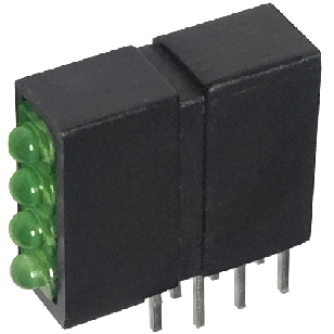 PC Board LED,1.8mm Dome Diffused,Right Angle 4x1 Quad-Level,0.20"Wx0.465"H,Green