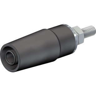Insulated, rigid, Ø 4 mm, accepting spring-loaded Ø 4 mm plugs with rigid insulating sleeve. Machined brass. The socket is surface-mounted in pre-drilled panels of plastic, metal, etc.Connection: Threaded bolt M4.