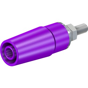 Insulated, rigid, Ø 4 mm, accepting spring-loaded Ø 4 mm plugs with rigid insulating sleeve. Machined brass. The socket is surface-mounted in pre-drilled panels of plastic, metal, etc.Connection: Threaded bolt M4.