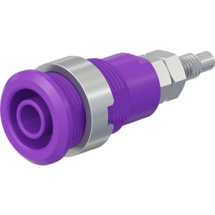 Insulated, rigid, Ø 4 mm, accepting spring-loaded Ø 4 mm plugs with rigid insulating sleeve. Machined brass. The socket is screwed into pre-drilled panels of plastic, metal, etc.Connection: Threaded bolt M4 and soldering hole.