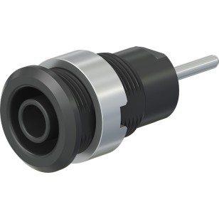 Insulated, rigid, Ø 4 mm, accepting spring-loaded Ø 4 mm plugs with rigid insulating sleeve. Machined brass. The socket is screwed into pre-drilled panels of plastic, metal, etc.Connection: Round connecting pin Ø 1.9 mm.