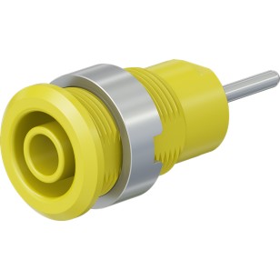 Insulated, rigid, Ø 4 mm, accepting spring-loaded Ø 4 mm plugs with rigid insulating sleeve. Machined brass. The socket is screwed into pre-drilled panels of plastic, metal, etc.Connection: Round connecting pin Ø 1.9 mm.