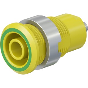 Insulated, rigid, Ø 4 mm, accepting spring-loaded Ø 4 mm plugs with rigid insulating sleeve. Machined brass. The socket is screwed into pre-drilled panels of plastic, metal, etc.Connection: Solder connection