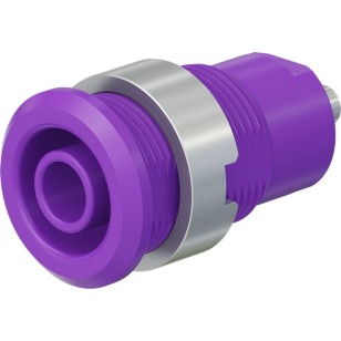 Insulated, rigid, Ø 4 mm, accepting spring-loaded Ø 4 mm plugs with rigid insulating sleeve. Machined brass. The socket is screwed into pre-drilled panels of plastic, metal, etc.Connection: Solder connection
