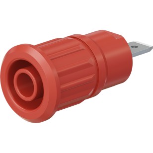 Insulated, rigid, Ø 4 mm, accepting spring-loaded Ø 4 mm¨plugs with rigid insulating sleeve. Machined brass. The socket is pressed into pre-drilled panels of plastic, metal, etc.Connection: Flat connecting tab 4,8 mm x 0,8 mm.
