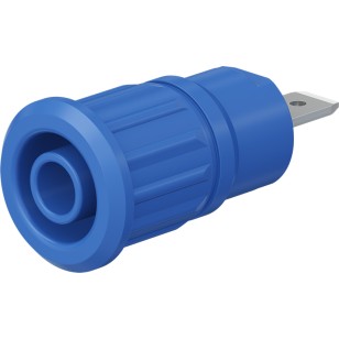 Insulated, rigid, Ø 4 mm, accepting spring-loaded Ø 4 mm¨plugs with rigid insulating sleeve. Machined brass. The socket is pressed into pre-drilled panels of plastic, metal, etc.Connection: Flat connecting tab 4,8 mm x 0,8 mm.