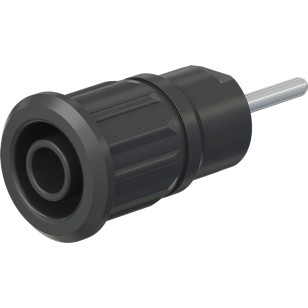Insulated, rigid, Ø 4 mm, accepting spring-loaded Ø 4 mm plugs with rigid insulating sleeve. Machined brass. The socket is pressed into pre-drilled panels of plastic, metal, etc.Connection: Round connecting pin Ø 1.9 mm