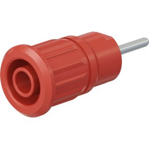 Insulated, rigid, Ø 4 mm, accepting spring-loaded Ø 4 mm plugs with rigid insulating sleeve. Machined brass. The socket is pressed into pre-drilled panels of plastic, metal, etc.Connection: Round connecting pin Ø 1.9 mm