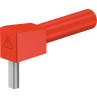 Rigid, right-angled to screw on to relay housings, distributor boxes etc. Conforms to protection class IP2X when installed. Ø 4 mm rigid socket in insulator, accepting spring-loaded Ø 4 mm plugs with rigid insulating sleeve.Connecting pin: Ø 3.1 mm x 2.5 mm.
