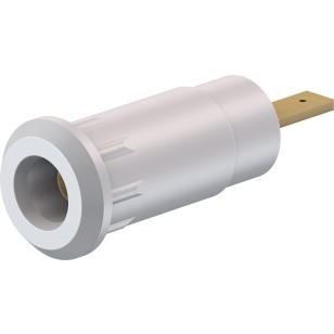 Insulated, rigid, accepting spring-loaded Ø 2 mm plugs with rigid insulating sleeve. The socket is pressed into pre-drilled panels of plastic, metal, etc.Connection: Flat connecting tab 2.8 mm x 0.8 mm.