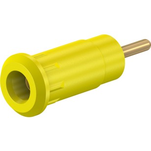 Insulated, rigid, accepting spring-loaded Ø 2 mm plugs with rigid insulating sleeve. The socket is pressed into pre-drilled panels of plastic, metal, etc.Connection: Round connecting pin Ø 1.9 mm.