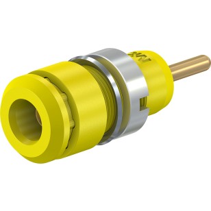 Insulated, rigid, accepting spring-loaded Ø 2 mm plugs with rigid insulating sleeve. The socket is surface-mounted or assembled flush into pre-drilled panels of plastic, metal, etc.Connection: Flat connecting tab 2.8 mm x 0.8 mm.