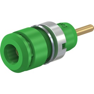 Insulated, rigid, accepting spring-loaded Ø 2 mm plugs with rigid insulating sleeve. The socket is surface-mounted or assembled flush into pre-drilled panels of plastic, metal, etc.Connection: Flat connecting tab 2.8 mm x 0.8 mm.