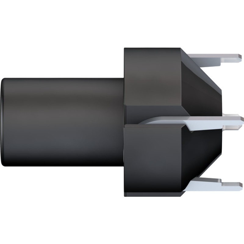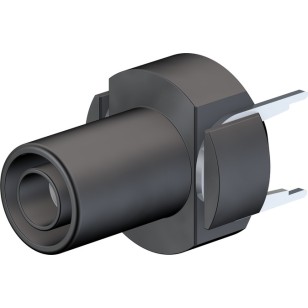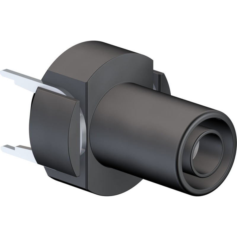 For mounting on vertical printed circuit boards, touch-protected and insulated according to IEC/EN 61010-1. The socket is directly soldered onto printed circuit boards. Fixed Ø 4 mm socket, to fit spring-loaded Ø 4 mm plugs with rigid insulating sleeve. Machined brass.Connection: Ø 2 mm round pin and contacts for mounting on printed circuit boards.
