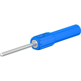 Solid, especially suitable for the screw connection to electricity meter clips. Ø 4 mm rigid socket in insulator, accepting spring-loaded Ø 4 mm plugs with rigid insulating sleeve. Available in pin diameter D Ø 2 mm and length L 40 mm.