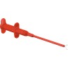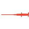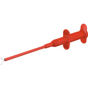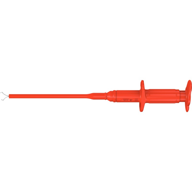 With flexible shaft and spring wire grabber (stainless steel) for a good contact to pins and wires in inaccessible places. Especially suitable for measuring voltages. The shaft is silicone insulated and guarantees good heat resistance and flexibility even at low temperatures. Ø 4 mm rigid socket in handle accepting spring-loaded Ø 4 mm plugs with rigid insulating sleeve.Version with different shaft lengths is available.