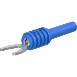 Made of brass for permanent installation, e.g. for connecting screw terminals. Ø 4 mm rigid socket in insulator accepting spring-loaded Ø 4 mm plugs with rigid insulating sleeve.Fork lug can be bent once to 45°.