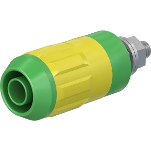 Insulated, rigid, Ø 4 mm, accepting spring-loaded Ø 4 mm plugs with rigid insulating sleeve. Machined brass. The socket is surface-mounted, assembled flush, or pressed into pre-drilled panels of plastic, metal, etc.Connection: Threaded bolt M4.Optional: Protective cap SD-XUB to cover up unplugged, unused sockets (Protection degree IP67).