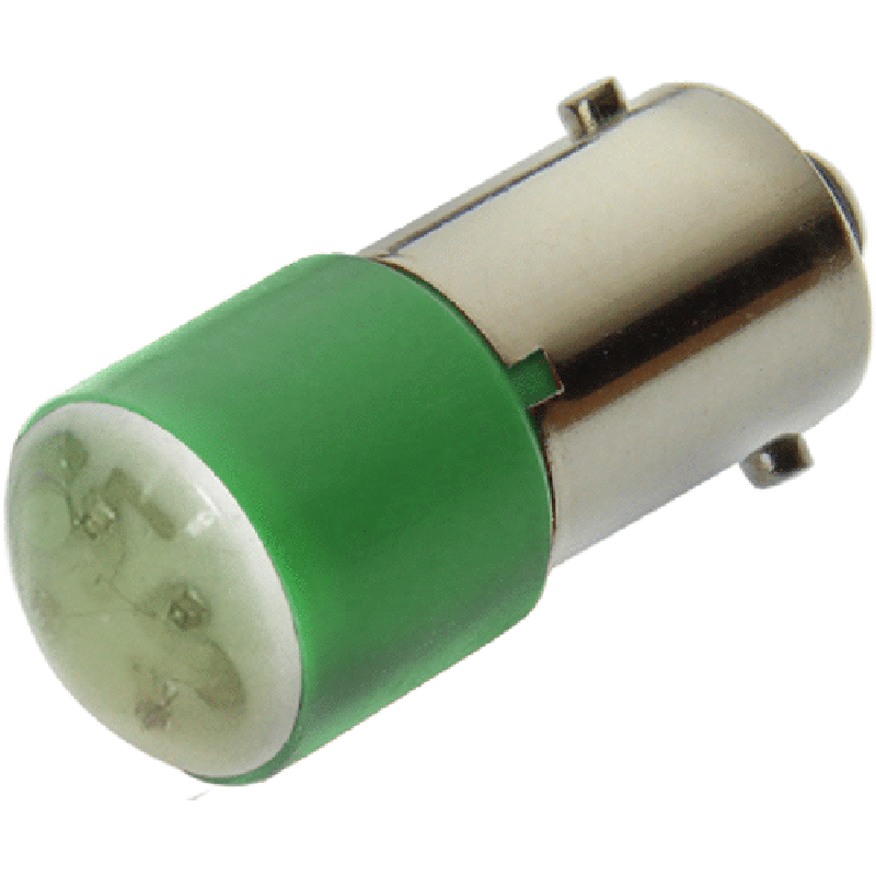 LED Bulb,12-Chip,Miniature Bayonet T3-1/4 (Ba9s),1.05"Lx0.408"D,Green,120Vac